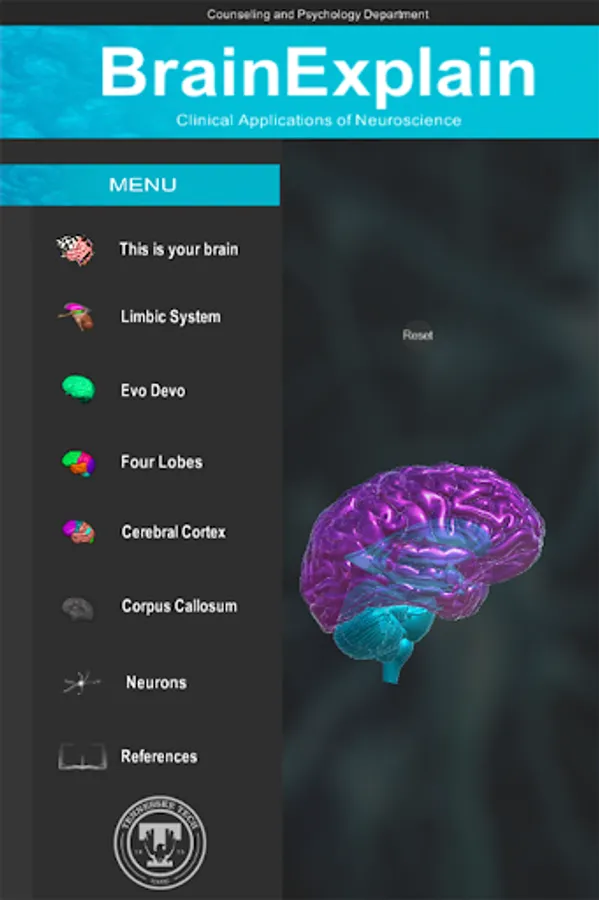 This app is designed to highlight specific regions of the human brain in three dimensions. It includes brief descriptions of the functions associated with those regions. Users are able to 'enter' the brain and see it from multiple perspectives. This provides a basis for understanding emotions, mental health issues, and their treatment.