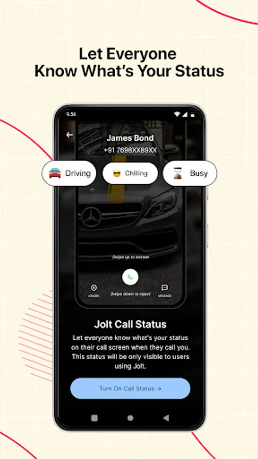 Mobile phones are highly personal and Jolt⚡ allows personal customization of mobile phones. Jolt offers both aesthetic & functional value to its end users. Apart from customization, motivation for personalisation to change the calling screen & calling background to match your personal style will clearly reflect in your interaction with phone. Jolt⚡ is an amazing phone calling app that will replace your default boring phone app, and helps you to easily connect with family and friends, set video as ringtone or customize the call screen as you want it, block spam callers, and manage calls smartly by creating profiles – all with a simple and intuitive design.