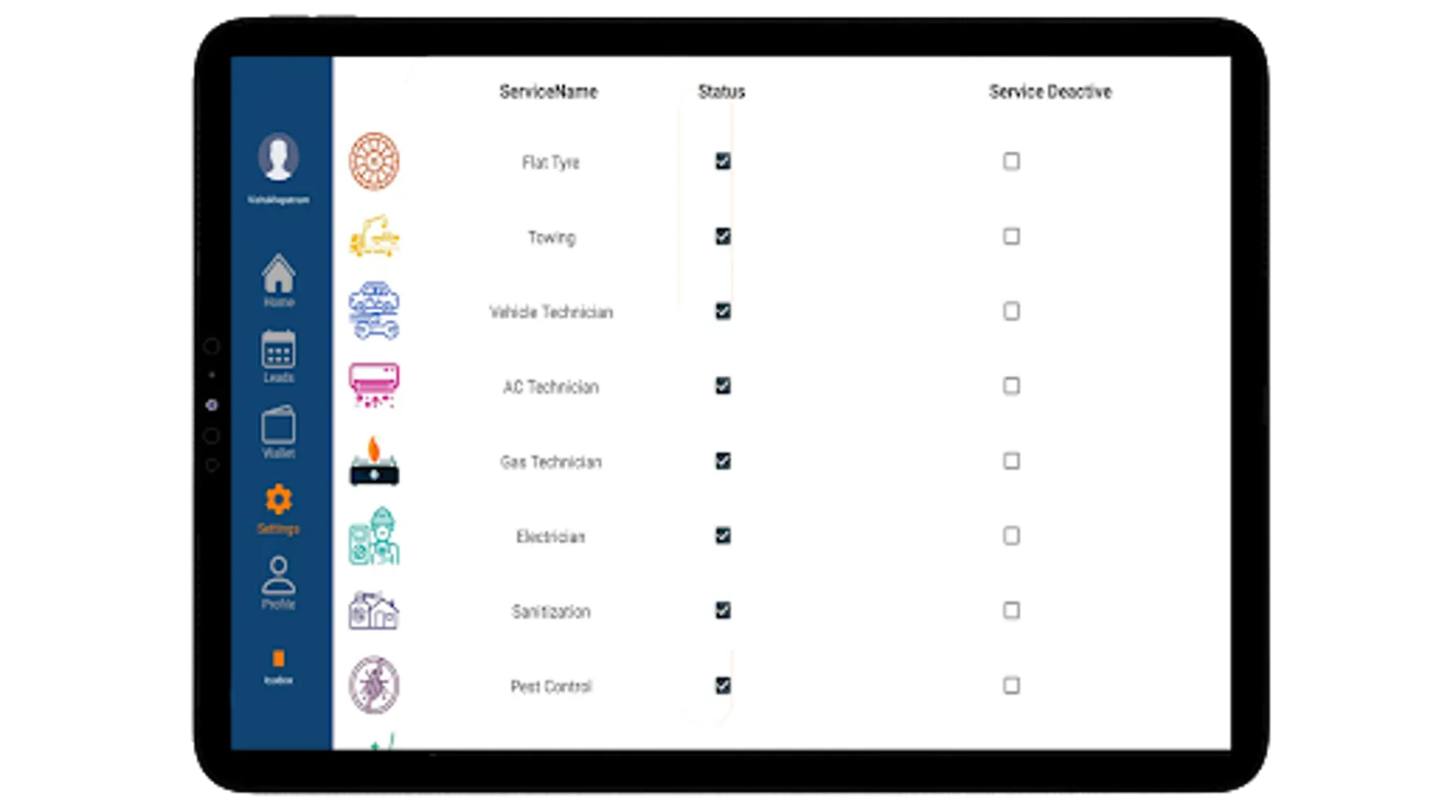 The franchise app is for the franchiser owner, when the customer is raising a request to AAA DUTY, the franchiser owner will get that request in the franchise app, so the franchiser must assign their particular technician for the particular request. The franchiser owner can check the total leads of 12 services, total payments of each day and total number of employees working in the franchiser app home section. In the lead section the total number of requests and details can be check. The total amount and the total number of requests for each service can be check in the wallet section. In the setting section the franchise owner can configure the services means they can enable and disable the services as per the demand. Also, in the profile section the franchise owner must fill their personal and professional details and must upload their documents too.