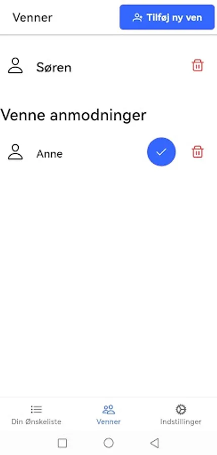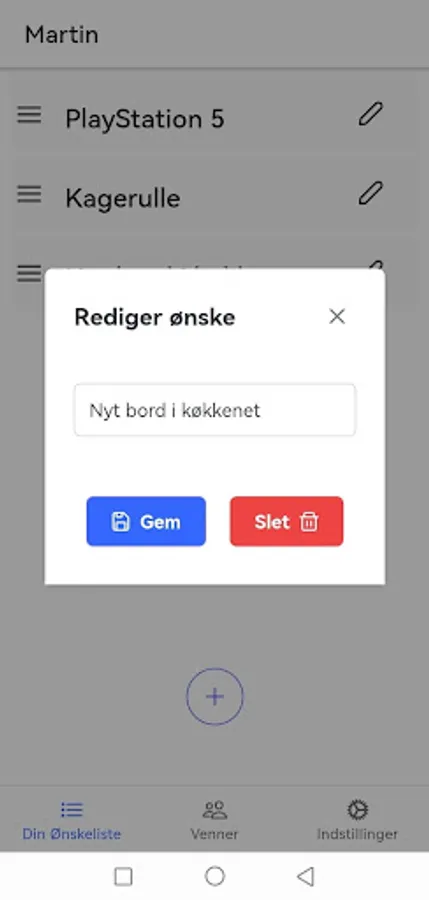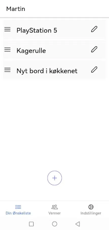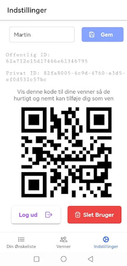 Det er enkelt og lige til. Du indtaster dit navn, og så er du inde! Du kan nu begynde at lave din ønskeliste, og tilføje venner som kan se din liste, enten ved at indtaste deres navn, eller scanne deres QR kode (som kan ses inde i indstillinger). Dine venner, som kan se din liste, kan også hakke af, om de indbyrdes har skaffet tingen du ønsker, eller har tænkt sig at skaffe den til dig uden du selv kan se det, så de kan holde styr på hvem der giver hvad.