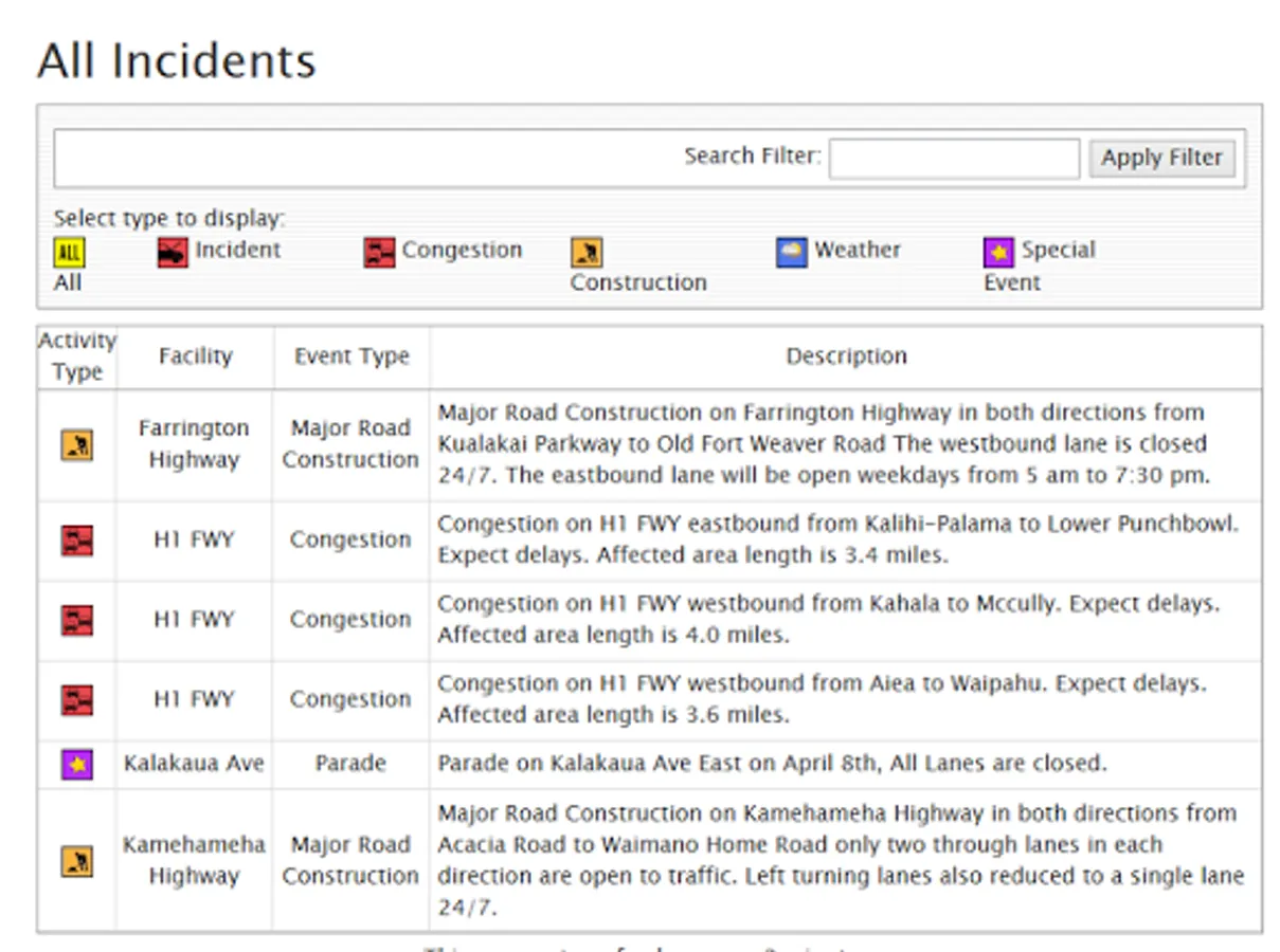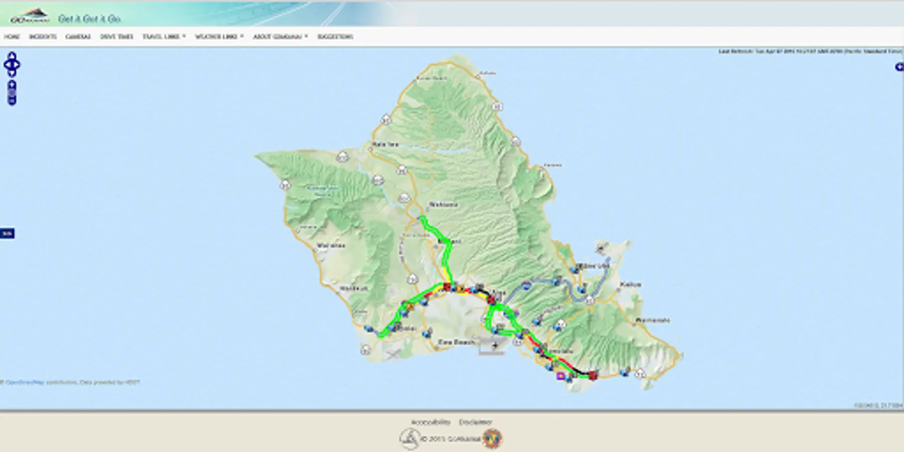 Free traffic information for the island of O'ahu, including incidents, traffic cameras, driving times and congestion as part of the Go Akamai Traveler Information Program. Provided by the Hawaii Department of Transportation and the City and County of Honolulu.