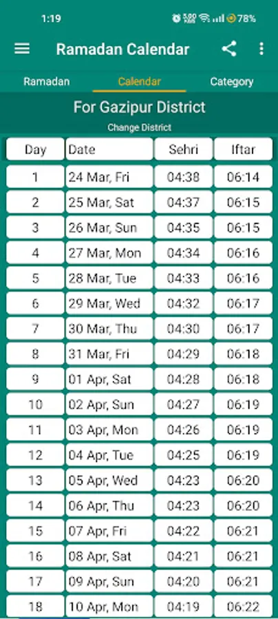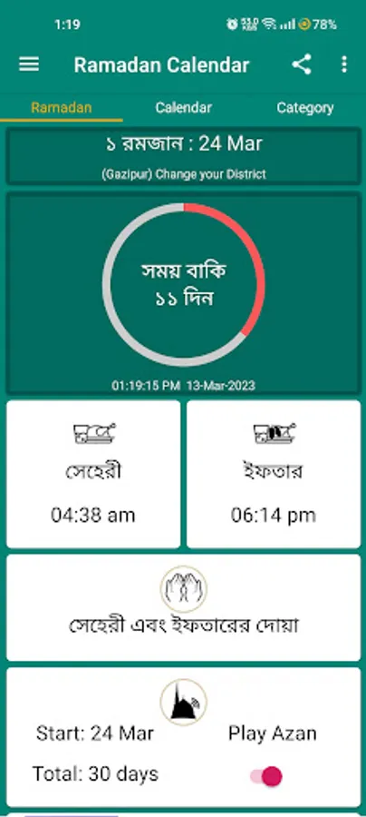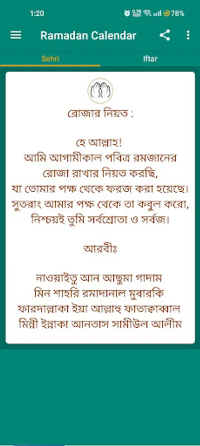 -জেলা অনুযায়ী সেহেরী ও ইফতারের সময়সূচী এবং Notification দেখার সুবিধা।