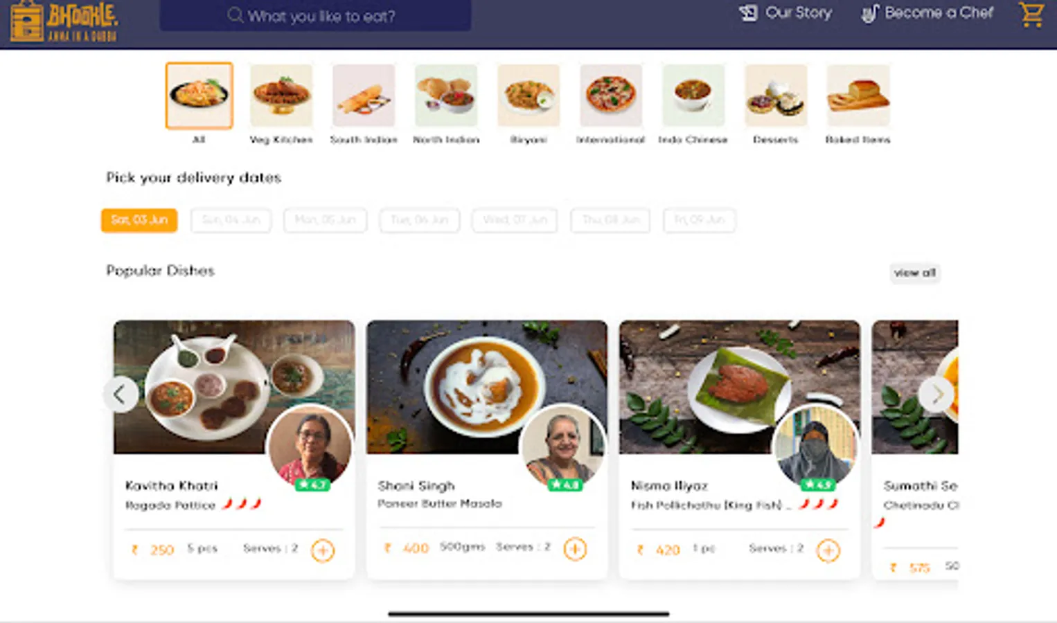 Bhookle is an unique food marketplace that connects hundreds of home chefs with customers who are looking for healthy, unique and authentic food choices that aren't typically found in any other food delivery apps or restaurants. Bhookle is an e-commerce food marketplace that stands true to our belief "Food is a memory and a medium of love exchange".