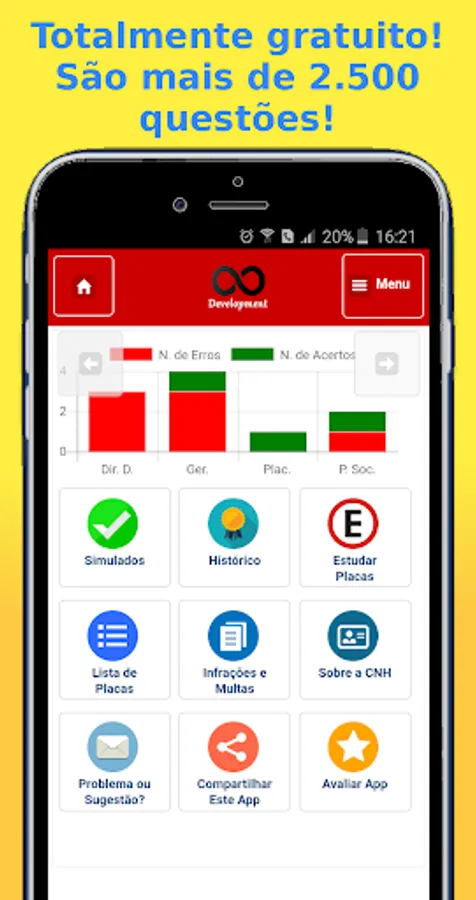This application provides more than 2,500 questions in the form of simulations per area and complete for you to prepare for the theoretical test of the National Driver's License (CNH) held by DETRAN.