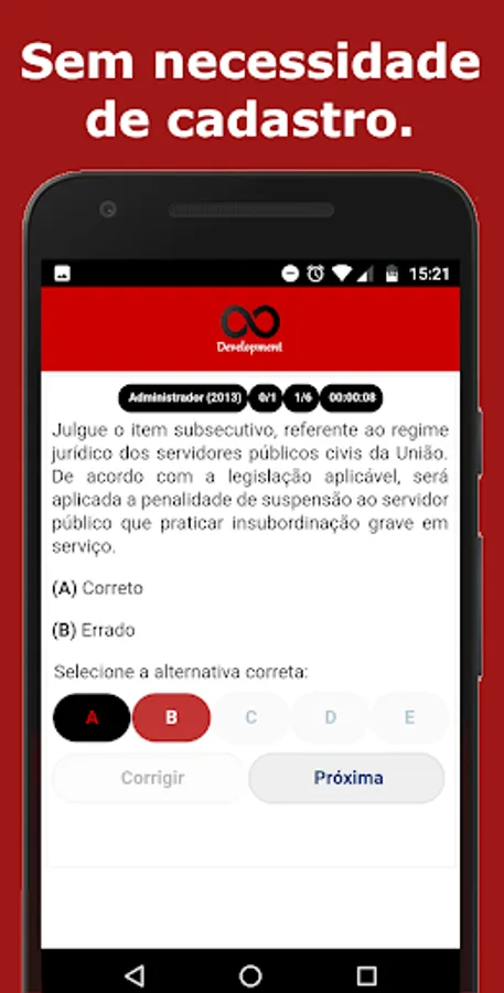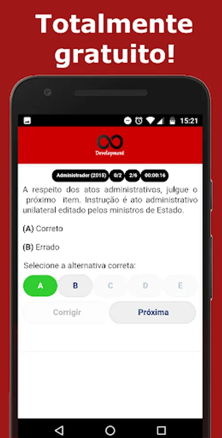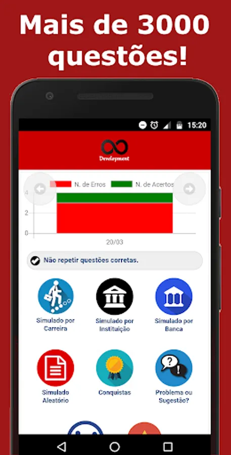 [✔] Resources such as timer, simulated performance statistics, review of wrong questions, among others;