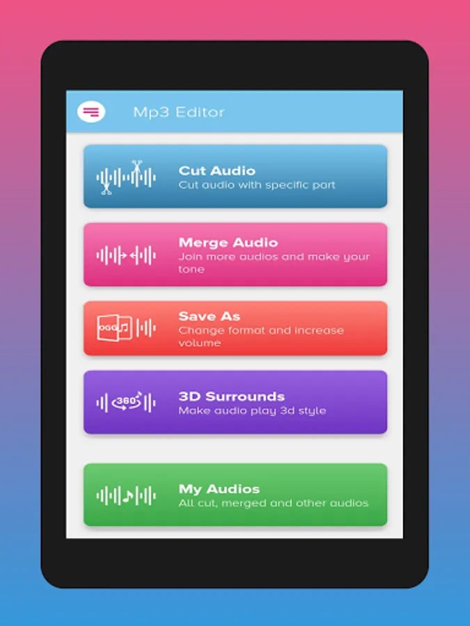 Get ready to embrace the world of MP3 cutter and merger, ringtone maker, audio editor, music editor, music cutter, sound editor, audio trimmer, cut music, audio mixer, and song editorβall in one music editor app! Download MP3 Cutter & Audio Trimmer today and cut music like never before. Say hello to the future of audio editing! π§πΆπ