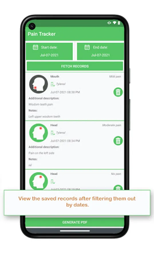 Pain Tracker is an application to help record pain, view records and generate PDF report