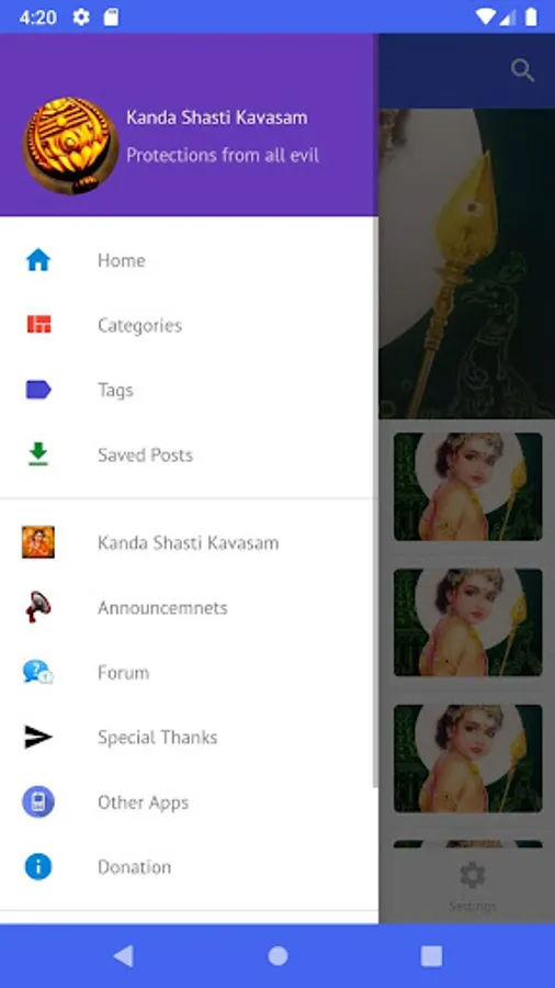 Kanda Shashti Kavacham or Skanda Sashti Kavasam (Tamil: கந்த சஷ்டி கவசம்) is a Hindu devotional song composed in Tamil by Devaraya Swamigal (born c. 1820), a student of Meenakshi Sundaram Pillai, on Lord Muruga, the son of Lord Shiva, in Chennimalai near Erode. amil contains many ancient hymns in praise of deities. Kanda Sashti Kavasam was composed in the 19th century. The song has been composed in praise of the Lord, seeking to shower His grace.