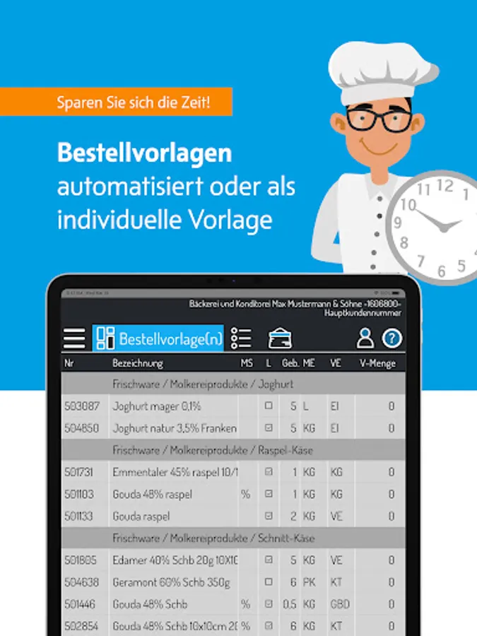 With the manually created or automated order templates, you reduce the time required to a minimum.