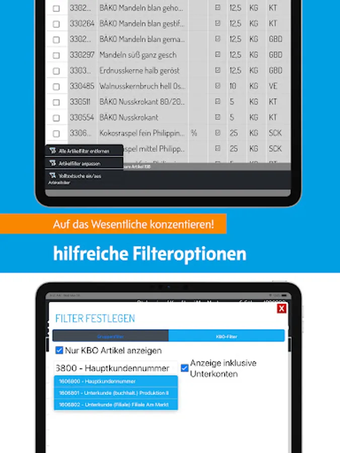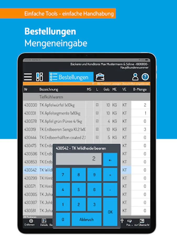 With the ordering app you record your orders in the warehouse, in the branch or in the office and transmit them directly to your BÄKO.