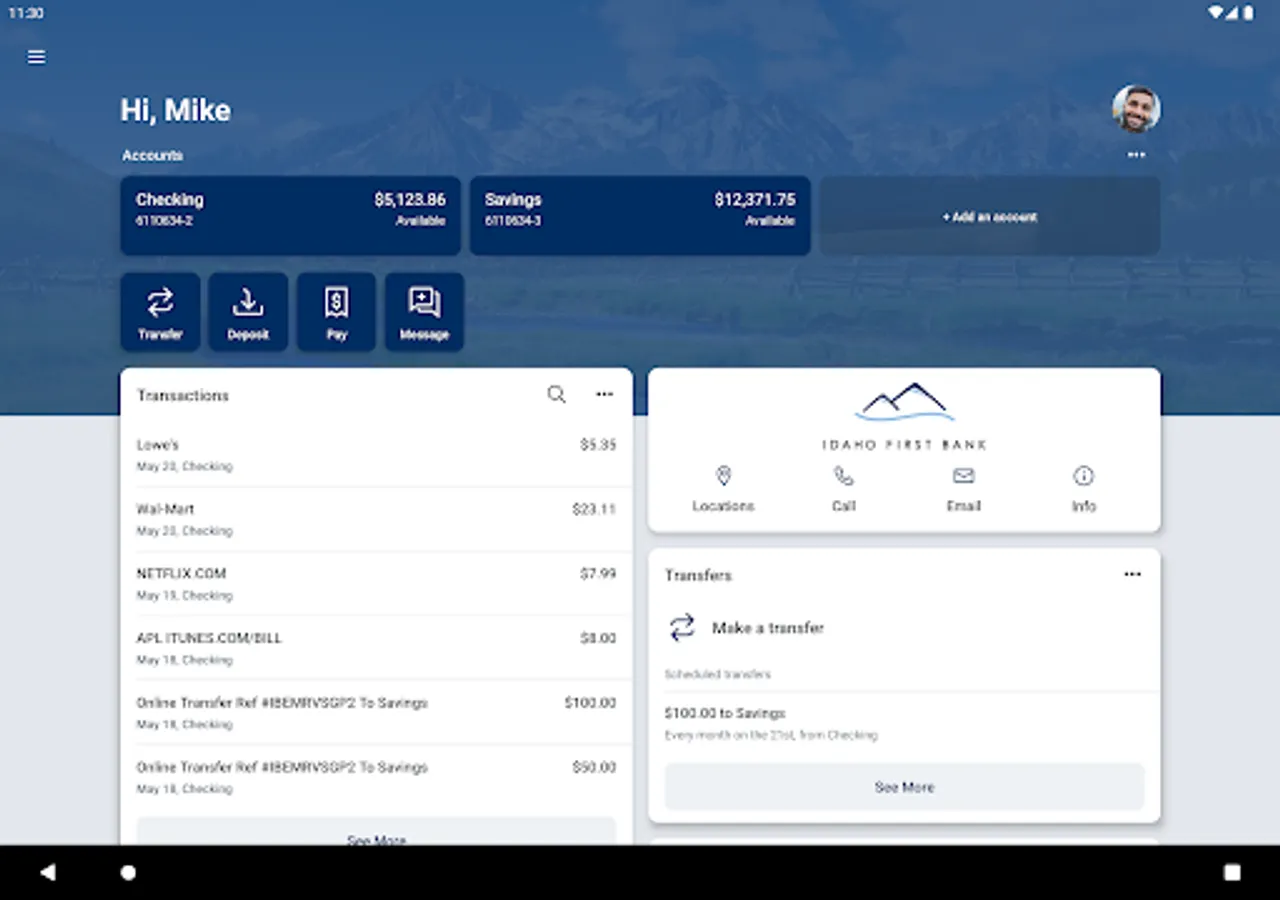 Idaho First Bank offers a mobile banking solution that enables bank customers to use their mobile device to initiate routine transactions and conduct research anytime, from anywhere.