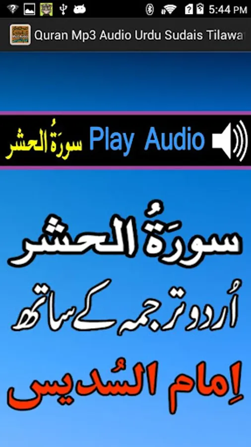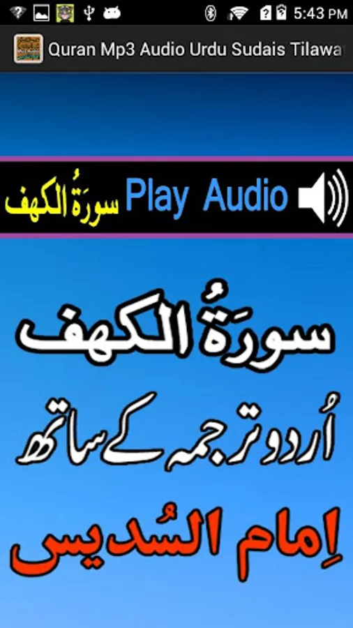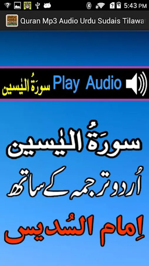 This is the best app of Quran Audio Album which Play Audio Mp3 Offline in Voice of Sudes With Urdu Translation Tarjumah, Quran Audio Play Without Internet.