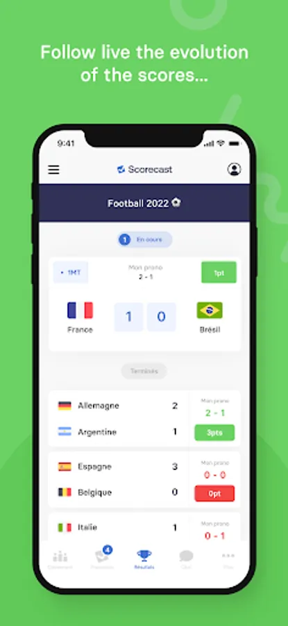- Receive notifications a few moments before the match so you don't forget to make your predictions
