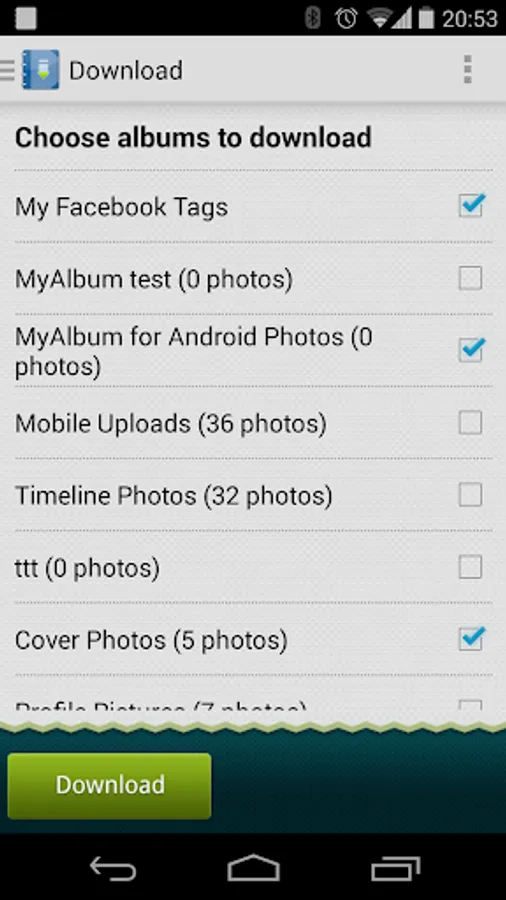 2. In the album list, use the check box to choose the Facebook albums you would like to download.