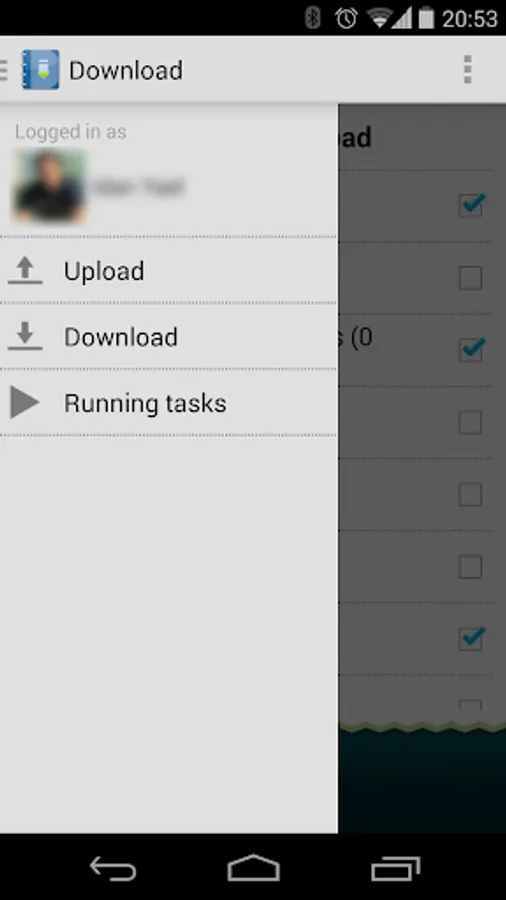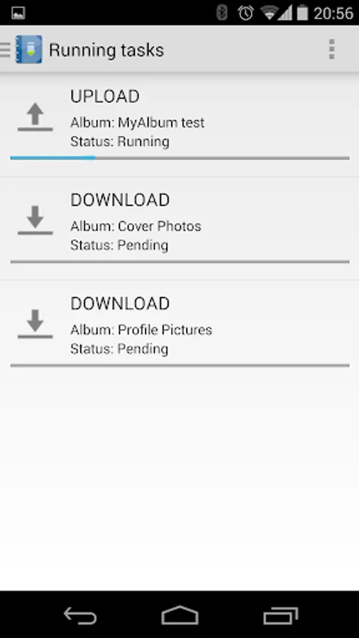 Last option in the left side navigation menu is 'Running tasks'. Choose this option to see all the downloads/uploads tasks that are pending execution.