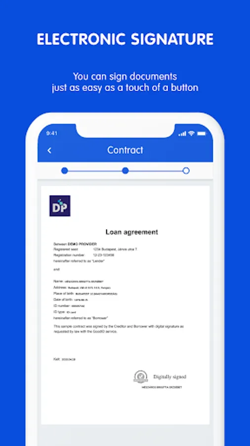 Electronic signatures are no longer a complicated process that requires the purchase of certificates. Once you have downloaded GoodID and stored your photo document (ID card, driving licence or passport) on it, you can sign any document or contract with your mobile phone via ittírdalá.hu with the same legal compliance as if you were doing it on paper and with a pen. In addition, if you have an eID with an eSignature function (which you can request free of charge at any Goverment Windows), you can also execute the highest level of security electronic signature, which is recognised by Hungarian law as a so-called "private document with full probative force". You can also upload and sign a document directly in the GoodID app, free of charge, thanks to the eSignature feature of eID.