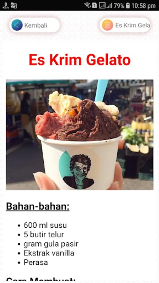 For mothers today, instead of reading books that are very straightforward, I give you this advice, we live in a millennial era, don't you want to install this application on your smartphone because of what? surely when you cook you don't forget to bring a cellphone too! so for that with this application you just click on the ice cream recipe of your choice, clean it up. A mother who is kece-kece can use this ice cream recipe collection application while offline.