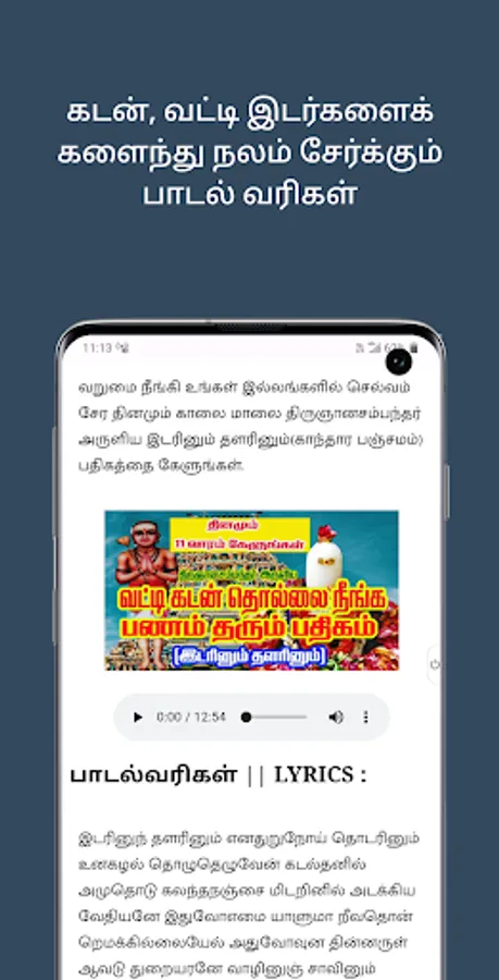 இந்தப் பாடலை தினமும் மாலையில் 11 மாதங்கள் தொடர்ந்து பாடுவதால் உங்கள் வாழ்வில் உள்ள இடர்கள் அனைத்தும் அகலும் என்பது நம்பிக்கை.