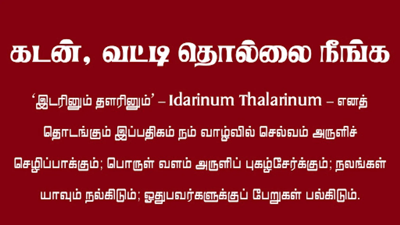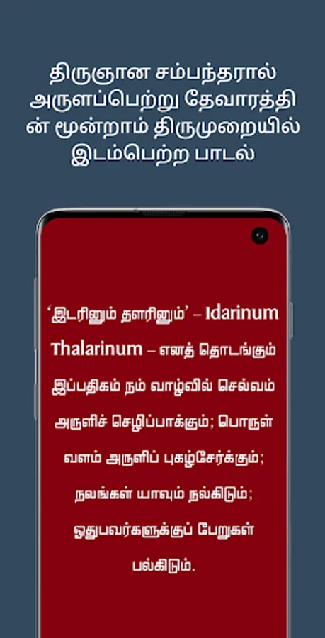 ‘இடரினும் தளரினும்’ – Idarinum Thalarinum – எனத் தொடங்கும் இப்பதிகம் நம் வாழ்வில் செல்வம் அருளிச் செழிப்பாக்கும்; பொருள் வளம் அருளிப் புகழ்சேர்க்கும்; நலங்கள் யாவும் நல்கிடும்; ஓதுபவர்களுக்குப் பேறுகள் பல்கிடும்.