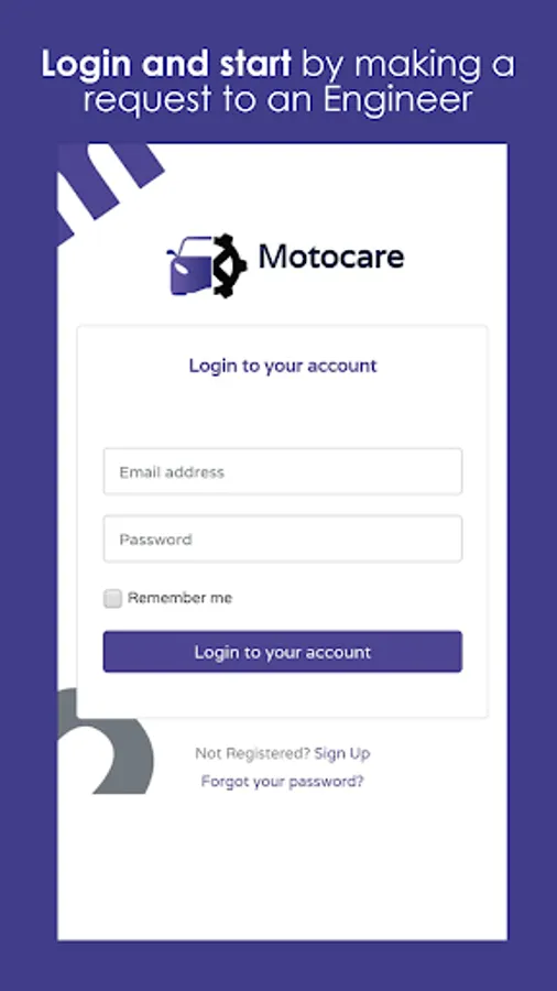 1. Customer sign-up on MotoCare app with to gain access to automobile engineers around their area.