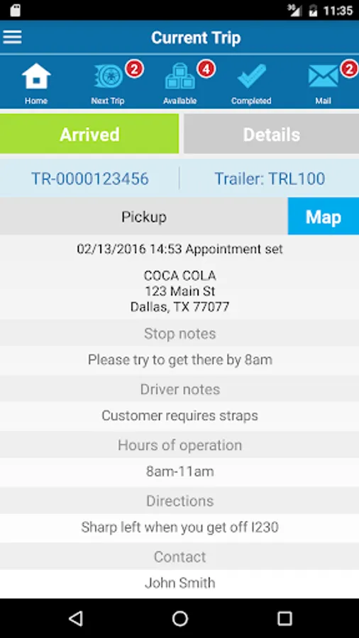 This application allows dispatchers to send trip information to drivers and receive updates on trip status(loaded, completed, etc.).