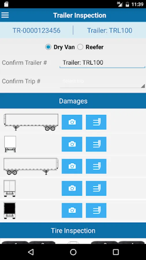 Trailer inspections - the driver can inspect the trailer, add comments, and refer to a list of preselected options for damage. Up to 4 pictures for each side can be taken. All information is uploaded to the office, reducing time and paperwork.