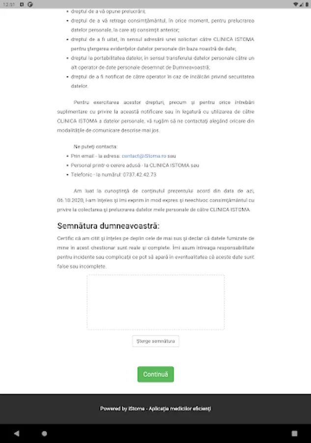 By completing this agreement on the tablet, the patient's electronic file in iStoma will be automatically updated (Authorizations section), and you will be able to consult it from any device.