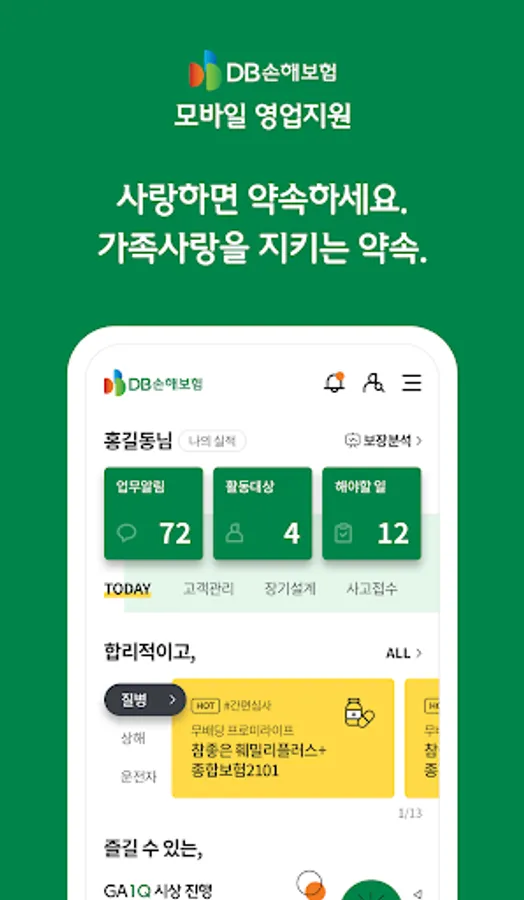 You can quickly and conveniently handle various tasks such as insurance analysis, subscription design, smart screening, long-term contract inquiry, and accident reception through mobile.