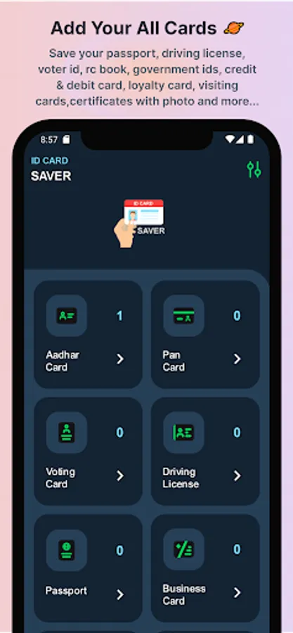 ID Card Saver – ID Card Holder app is an offline id card holder wallet app to keep details of your important cards in one secure place.