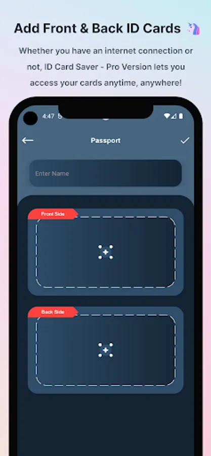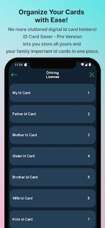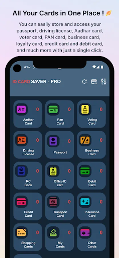 ID Card Saver - Pro Version is the ultimate solution to keep all your important cards' details in one secure place. This app provides an offline ID card holder wallet app that is designed to help you keep track of all your cards in a hassle-free manner. With this app, you can easily store and access your passport, driving license, Aadhar card, voter card, PAN card, business card, loyalty card, credit and debit card, and much more with just a single click.