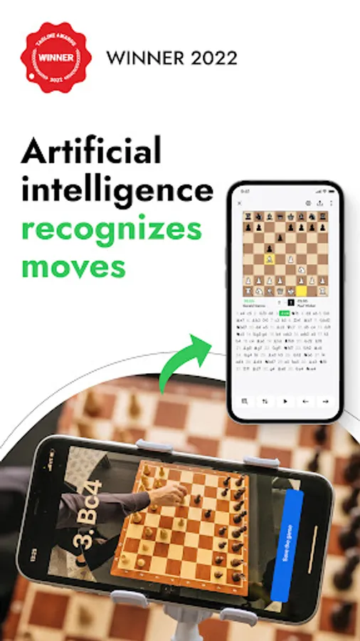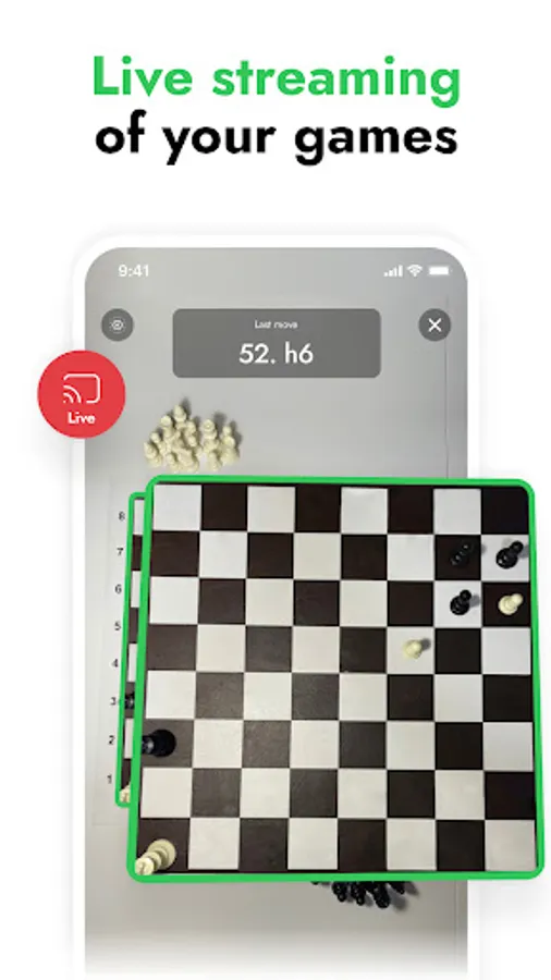 idChess is based on computer vision and machine learning technologies. Using artificial intelligence, idChess recognizes chess pieces on the board and automatically records the chess notation of your game. To record and broadcast games, all you need is the idChess app installed on your smartphone and a tripod to securely mount your smartphone above the board. You can recognize games even offline. The idChess app does not require an Internet connection to digitize games.
