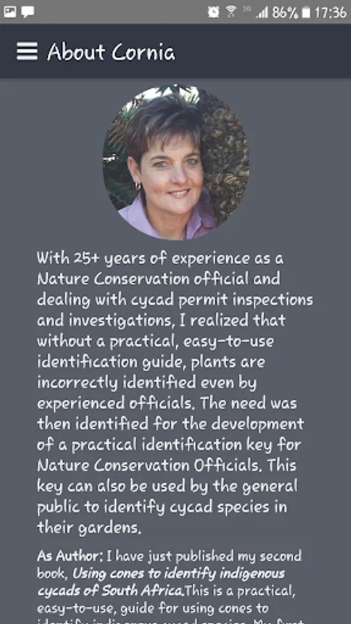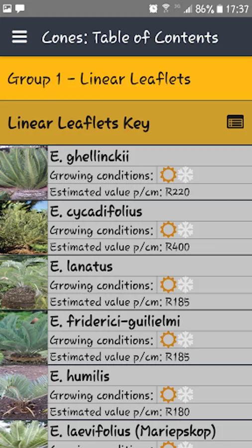 Purpose of this app is to serve as a practical easy-to-use guide, by using leaves and cones for the identification of indigenous cycad species ( Encephalartos species).