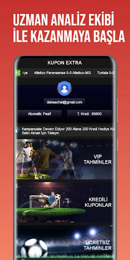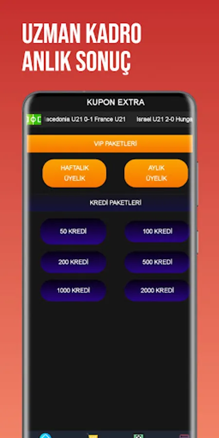 In our application, there are Vip Predictions-Credit Coupons and Free Matches.