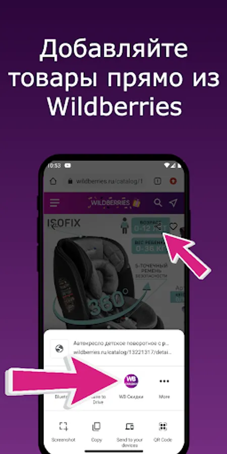 You can add a product to the WeHelper app directly from Wildberries! Just click "Share" and select the WeHelper app.
