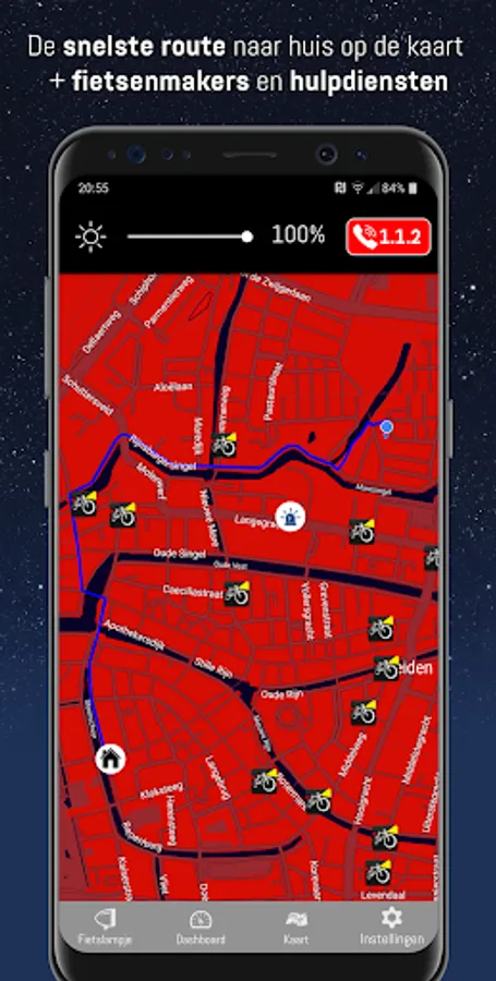 You know it: in the dark on your bike and forget your bicycle lights. The batteries are empty, or your lights are stolen. This app saves you.