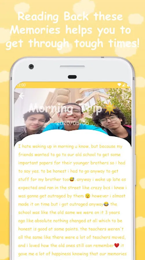 Memories helps improve your writing skills, keep your memories and remind you of it when you need it, helps you get through tough and most important never leaves you alone!