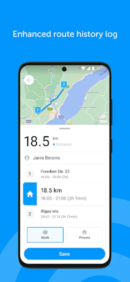 Route history - a complete log with all of the driver's previous travels. Add comments, client names and costs to each route and view reports in the platform;