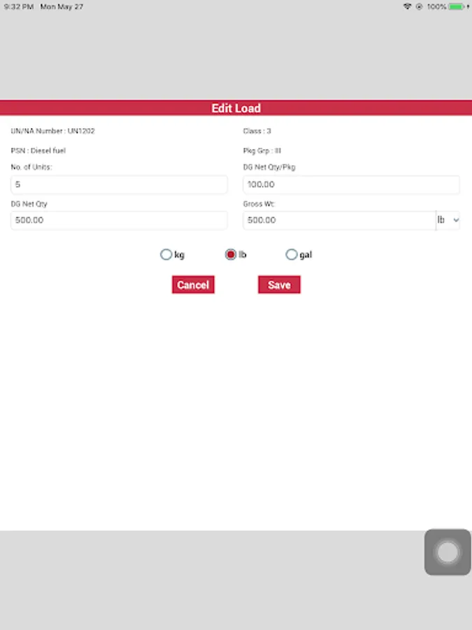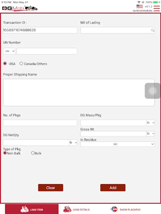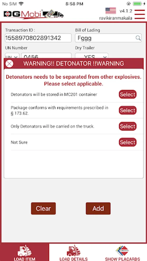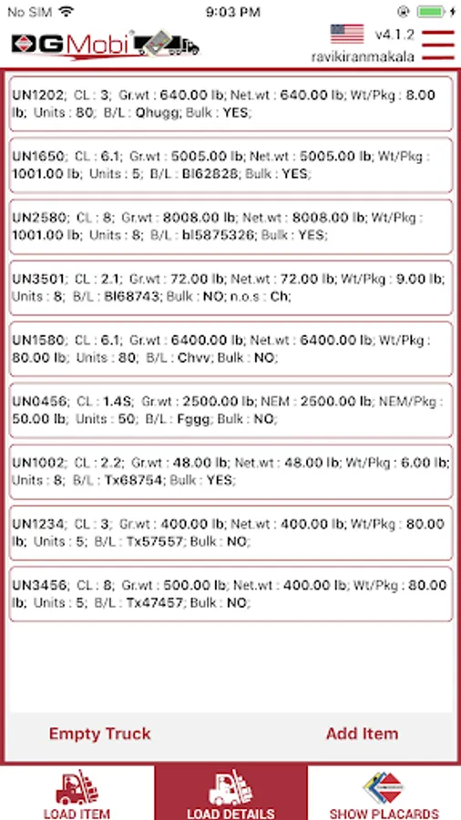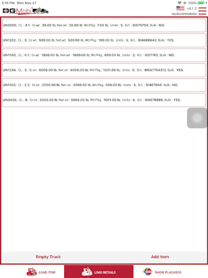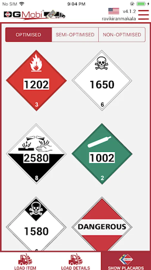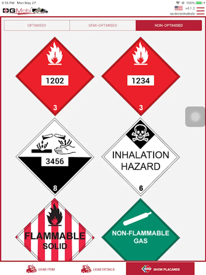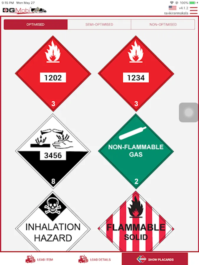 - At each pick-up and drop-off enter or remove the load, and DGMobi recalculates placarding.