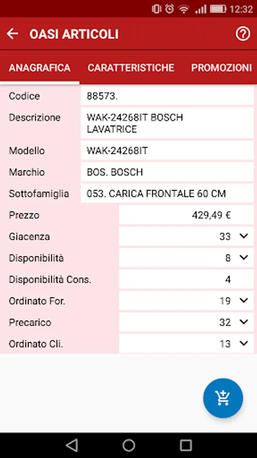 • Search for articles by directly reading the barcode with your smartphone's camera or typing in a search key (long code, model, EAN, description, ...).