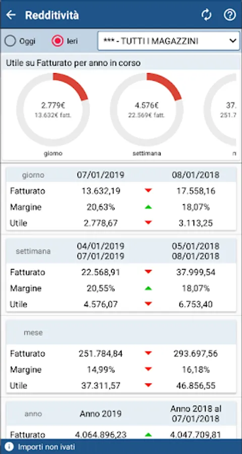 • Profitability of today / yesterday divided into periods (day, week, month, year) compared with the previous year