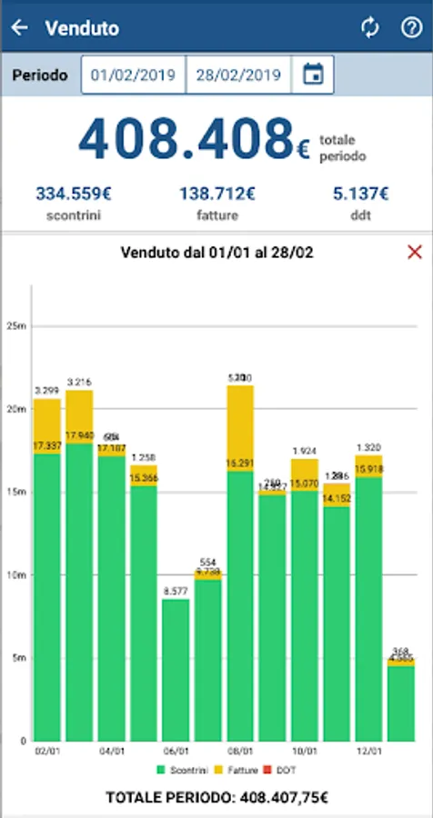 • Sold in the last period divided between receipts, invoices and delivery notes