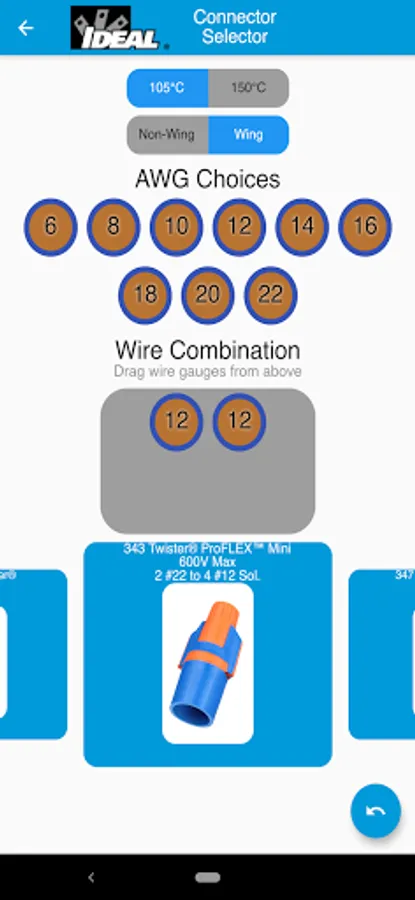 Connector Selector – choose the right connector for the job by inputting the wire combination and connector style.