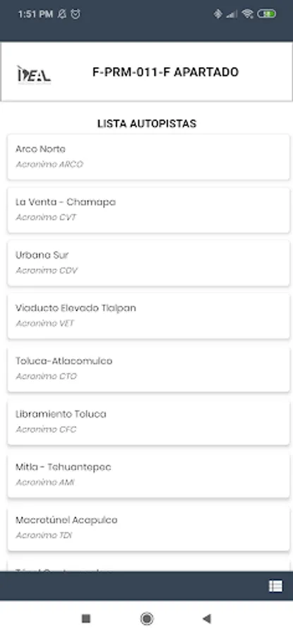 Listado de apps Ideal