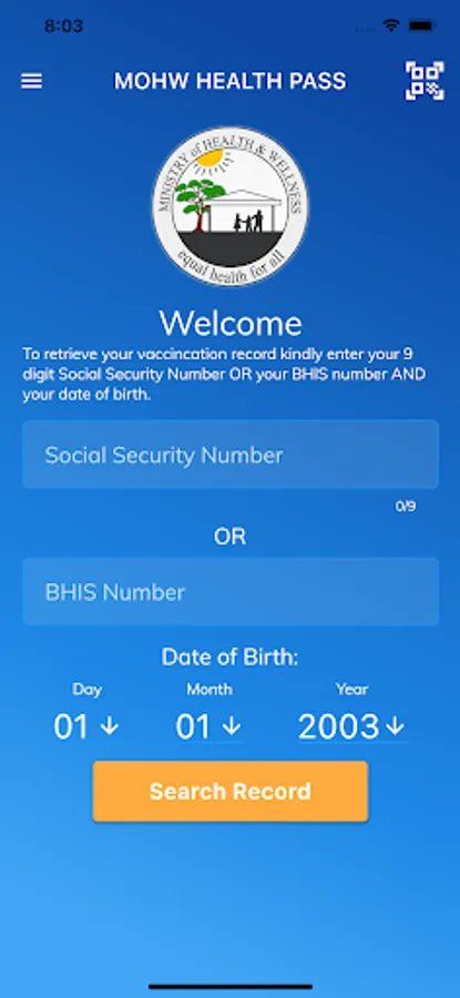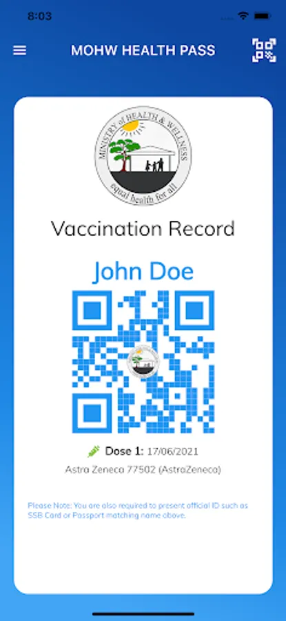 GOB Ministry of Health & Wellness Health Pass App allows you to load your official vaccination record as well as scan vaccination records of others for verification purposes.