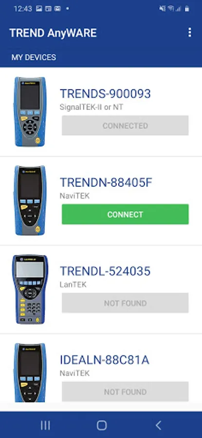 The app connects to your TREND cable or network tester using Wi-Fi and transfers test reports to your mobile device. Once data is transferred, users can view the pdf reports and send them using their preferred file sharing method including email or other file sharing app.