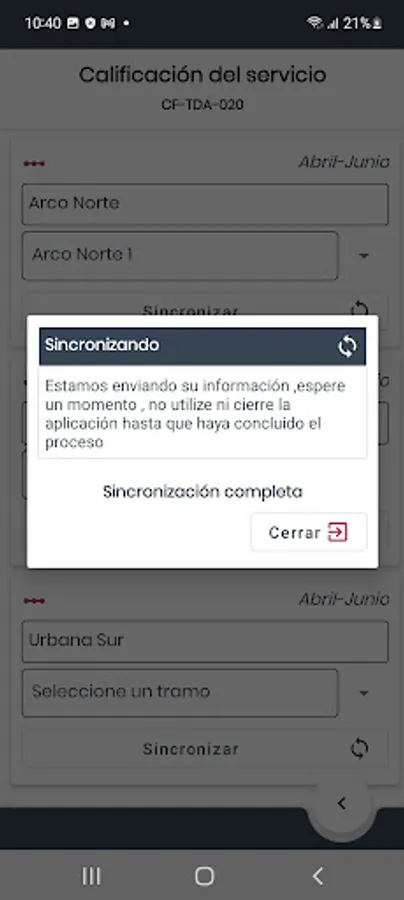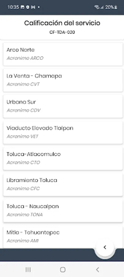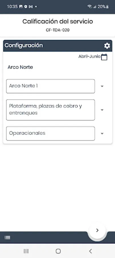 Aplicación que permite evaluar los servicios prestados en la vía (plazas de cobro, paradores, sanitarios, tiendas de conveniencia, etc.) de acuerdo al proceso de establecido.