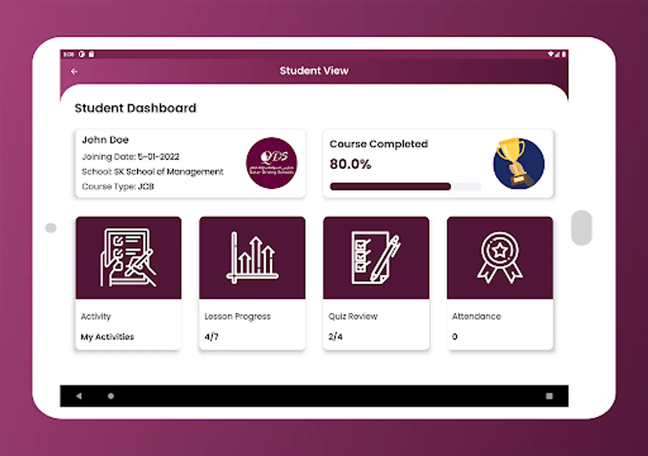 Instructors will be able to view the applicants course progress, take applicants' absence in the classroom and receive reminders for scheduled classes & appointments.