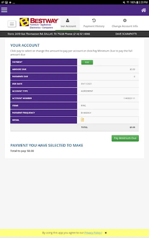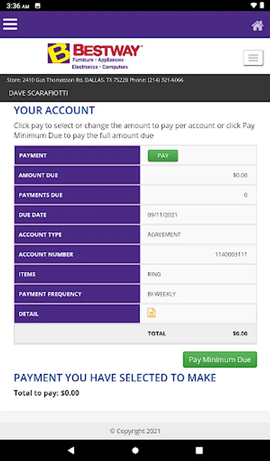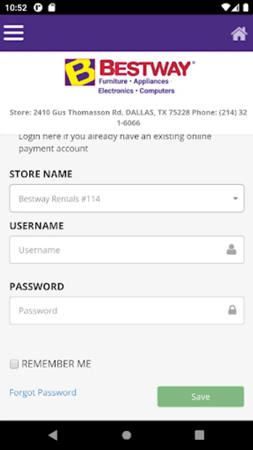 To get started, log in using the same username and password you use to log in to Bestway’s online payments website. If you do not have an account, sign up by clicking the “Sign Up” link at the bottom of the login page.