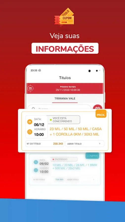 By purchasing your title and assigning the Right of Redemption, you help the beneficiary Institution and compete for incredible prizes. But calm down, if you win, the prize will be all yours, as the Redemption Right ceded refers to a percentage of the amount paid at the time of purchase of the security. There are already thousands of winners and you can be too! Come help and compete!