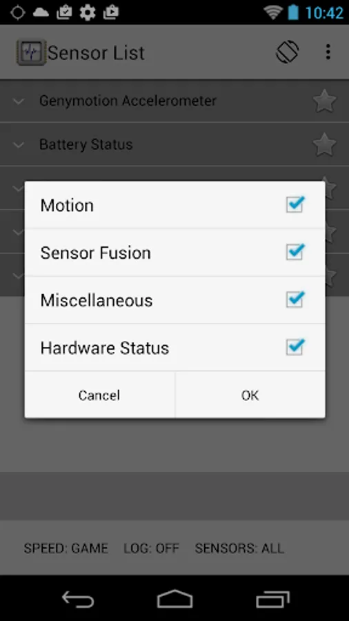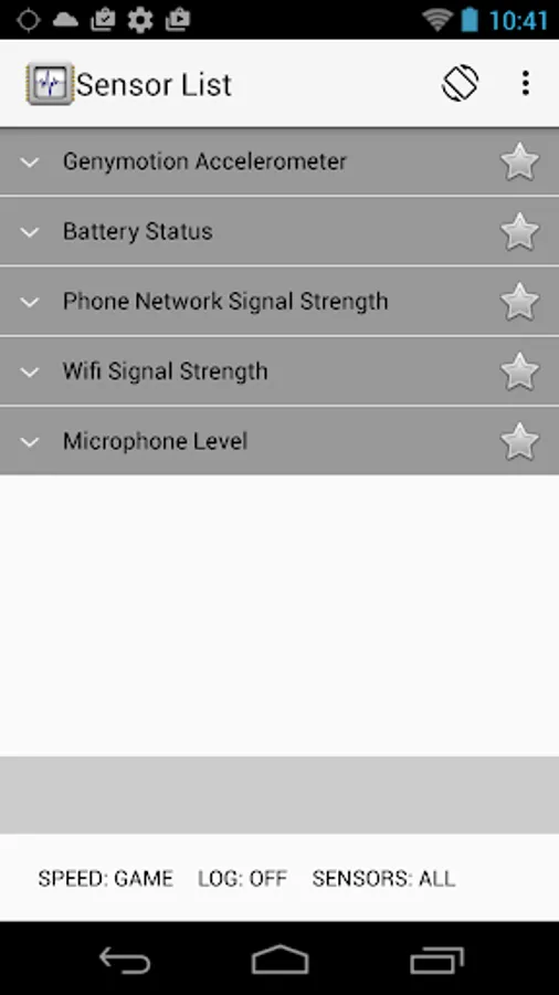 Including accelerometer, magnetic field, orientation, temperature, light...